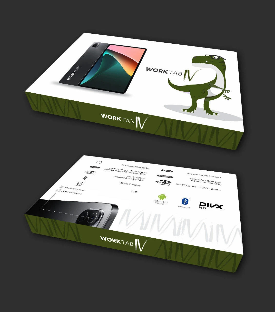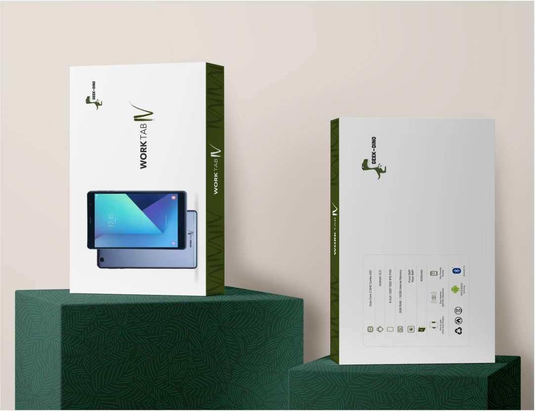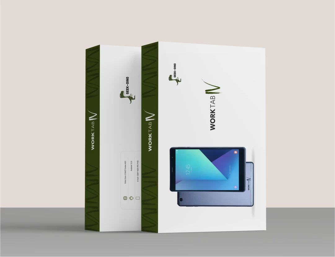 The Work Tab IV package design is simple, modern, and professional. It features a clean white background with bold black text and a bright green accent color. The color pallets we used, The white background creates a sense of cleanliness and professionalism, while the black text is bold and easy to read.
